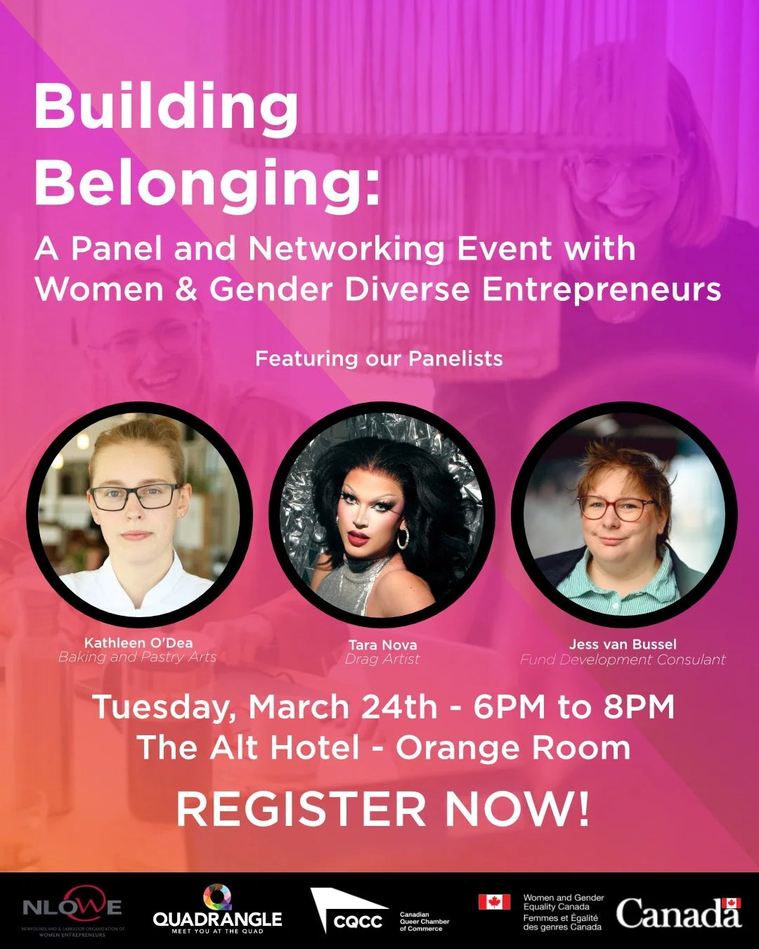 Join Quadrangle NL and Newfoundland and Labrador Organization of Women Entrepreneurs (NLOWE) for an evening designed for 2SLGBTQIA+ entrepreneurs in Newfoundland and Labrador.